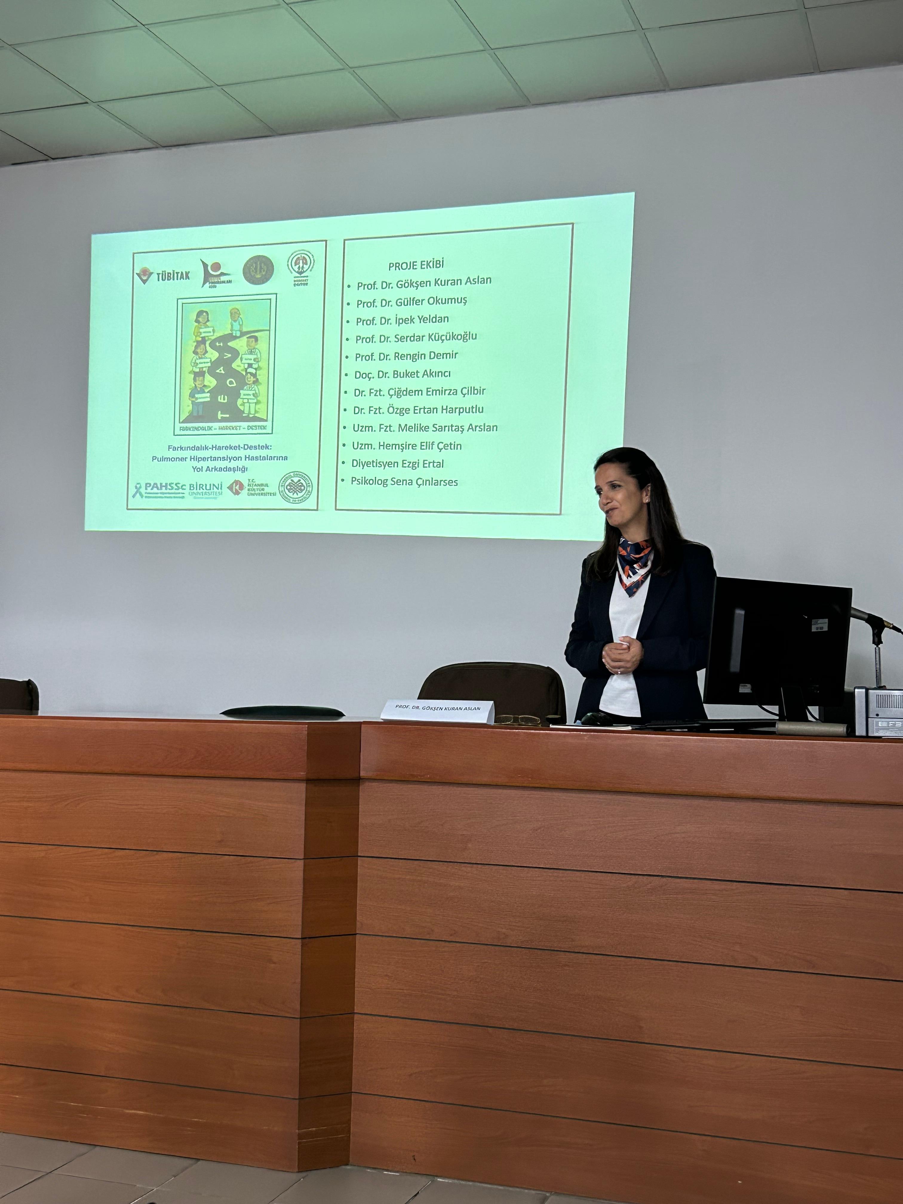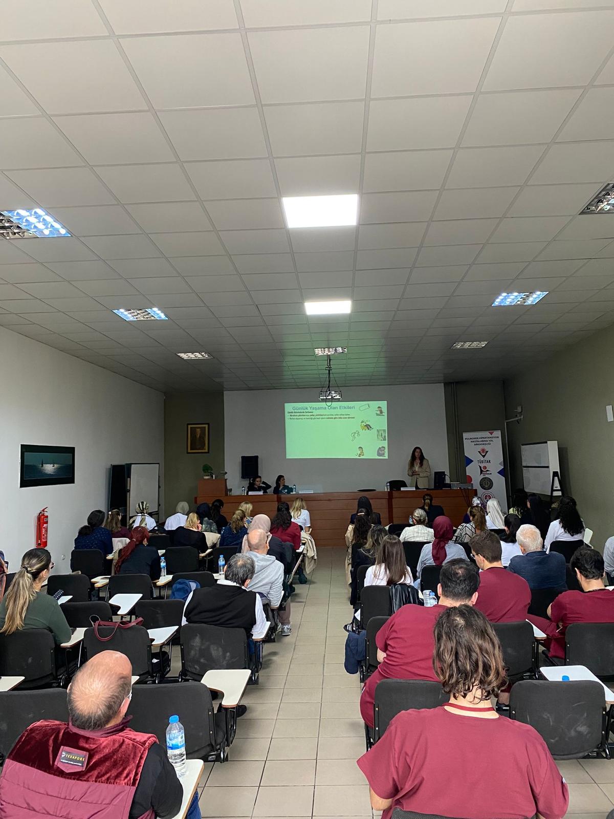 Pulmoner Hipertansiyon, akciğer atardamarlarında basınç artışıyla nefes darlığı, yorgunluk ve fiziksel kapasite kaybına neden olan bir hastalıktır. Hastalar bu semptomlar nedeniyle günlük yaşam aktivitelerini sürdürememekte ve bağımsızlıklarını kaybetmektedir. Projenin amacı, hastalara nefes darlığını yönetme ve fiziksel kapasitelerini artırma becerileri kazandırmaktır. Ayrıca, kronik hastalık yönetimi, sağlıklı beslenme ve ruh sağlığını koruma gibi konularda bilgilendirme sağlanacaktır. Projede hasta ve hasta yakınlarına yönelik disiplinler arası bir eğitim planlanmıştır. Günlük yaşam aktivitelerindeki yetersizliklerle başa çıkma ve güvenli egzersiz yöntemlerini öğrenme konularında bir atölye düzenlenecektir. Bu atölye ve eğitimlerin hedef grubu pulmoner hipertansiyon tanılı hastalardır. Eğitimde uzmanlar, çok yönlü bilgilendirme sunumları yapacak, soru-cevap ve geri bildirimlerle bilgi düzeylerini artıracaktır. Ön test-son testlerle katılımcıların bilgileri ölçülecek, sonuçlar ilerleyen etkinlikler için değerlendirilecektir. Eğitimlerin önemli noktalarını ve geri bildirimleri içeren broşür hazırlanacak, sosyal medyada paylaşılacak ve Pulmoner Hipertansiyon ve Skleroderme Hasta Derneğinden destek alınarak daha geniş kitlelere ulaştırılacaktır. Fiziksel aktivite atölyesi, güvenli sınırlarla uygulama ve pratik içerik sunarak hastaların günlük yaşamlarına uyarlanabilecek yöntemler içerecektir. Projede yer verilen sanat terapisi atölyesi de hastalara duygu durumlarını yansıtma ve değerlendirme imkanı verecektir. Son etkinlik olan sempozyumda lisans ve lisansüstü öğrencilere güncel bilgiler aktarılacaktır. Sempozyum, alanında deneyimli kişiler tarafından çok yönlü konu başlıkları ile planlanmıştır.